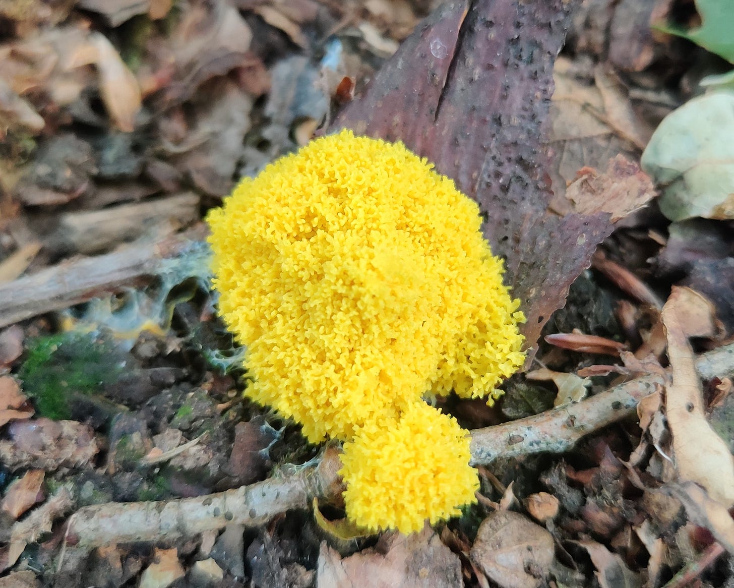 Generally speaking, fungi have two parts: first is the fruiting body. This can be a classic toadstool, a bloom of mould, a globular puffball, a nest of cups, a woody bracket, or seemingly innumerable other shapes. They have a similar purpose though, which is to project out and distribute spores. Most spores are microscopic, but if you see motes of dust streaming through a shaft of light cast by your bedroom curtains, some of the smaller dots may well be little baby mushrooms on their way to find a suitable place to settle.