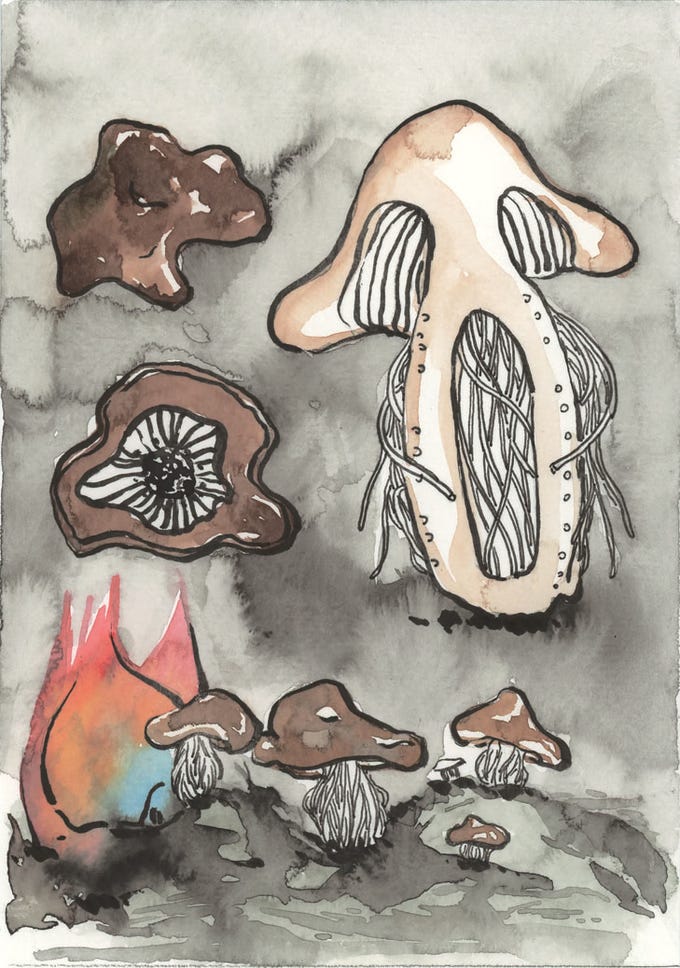 Another kind of mushroom book I own are closer to art books. Large coffee table sized tomes with detailed explanations of the most unusual and beautiful, if not the most common, fungi from across the globe. One has detailed macro-photography, another beautiful illustrations. You would think that the art of traditional watercolour paintings were a facet of a bygone era of guides, but the opposite is true. Most of my more practical guides are illustrated, and the more aesthetic books are usually photos.